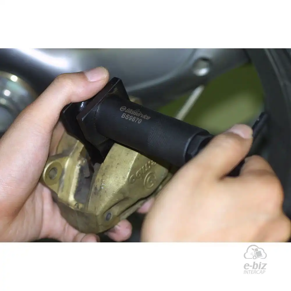 DESCRIPCION 2: Comprime los pistones de freno de la mayoría de modelos de calipers para facilitar el remplazo de las pastillas, dando así lugar al disco para su fácil ensamblado.