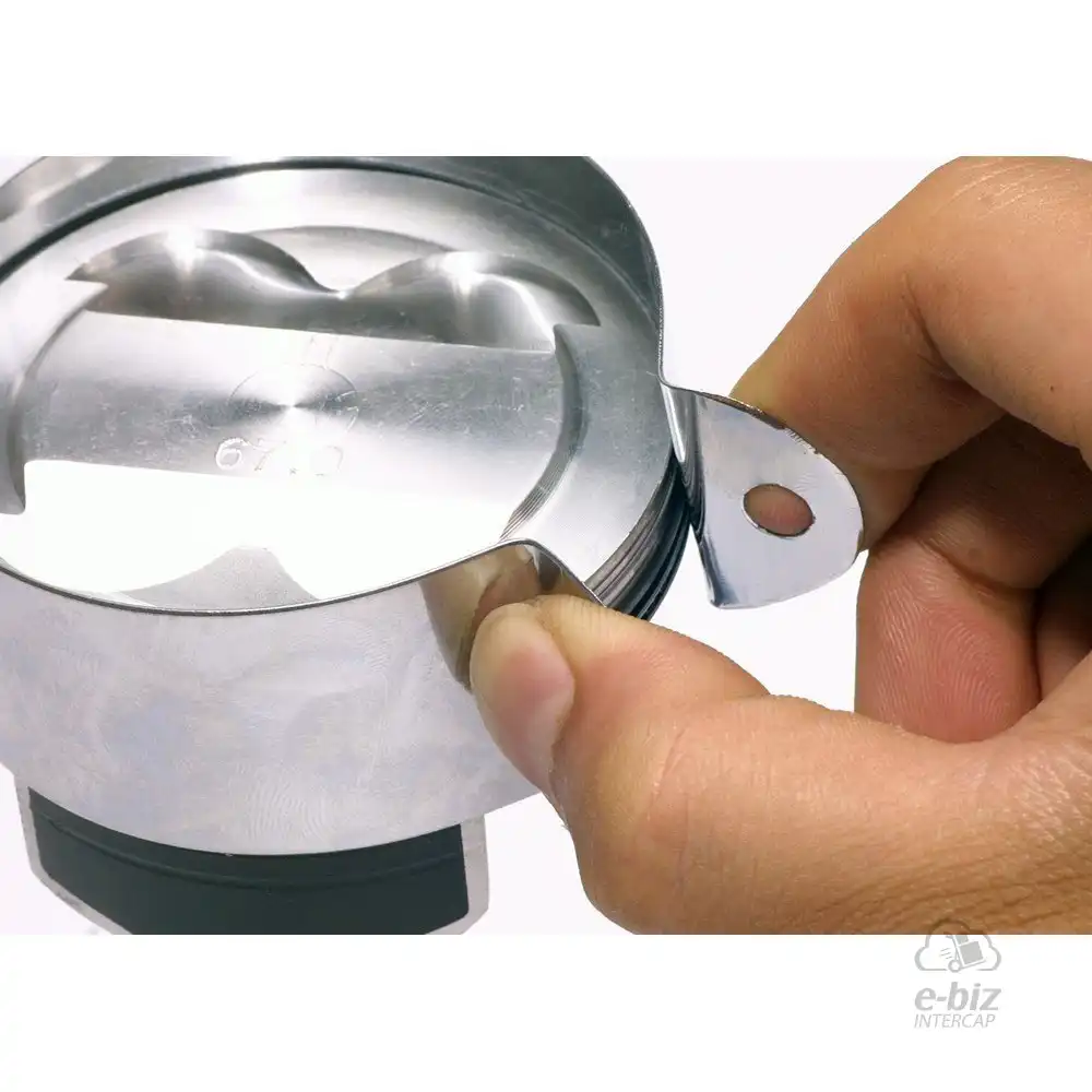 DESCRIPCION 2: La manija de la función de trinquete mantiene los anillos de compresión en posición para facilitar la instalación de los anillos de pistón. Los accesorios se pueden usar paralelos o perpendiculares al bloque de cilindros.