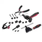 DESCRIPCION 2: Este kit incluye un conjunto maestro completo de reparación de cadenas, diseñado para cortar, colocar los pernos y placas del eslabón de cadenas hasta el paso # 632. Este kit hace que la reparación de cadenas sea sencilla y rápida.