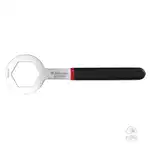 DESCRIPCION 2: Esta llave de alta resistencia y precisión facilita la extracción y colocación de las tuercas de embragues de motocicletas scooter, que por sus características están en lugares difíciles de operar.